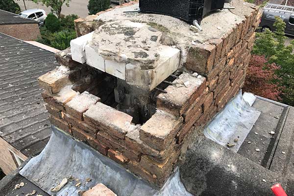 De losse stenen bij de schoorsteen zijn verwijderd.